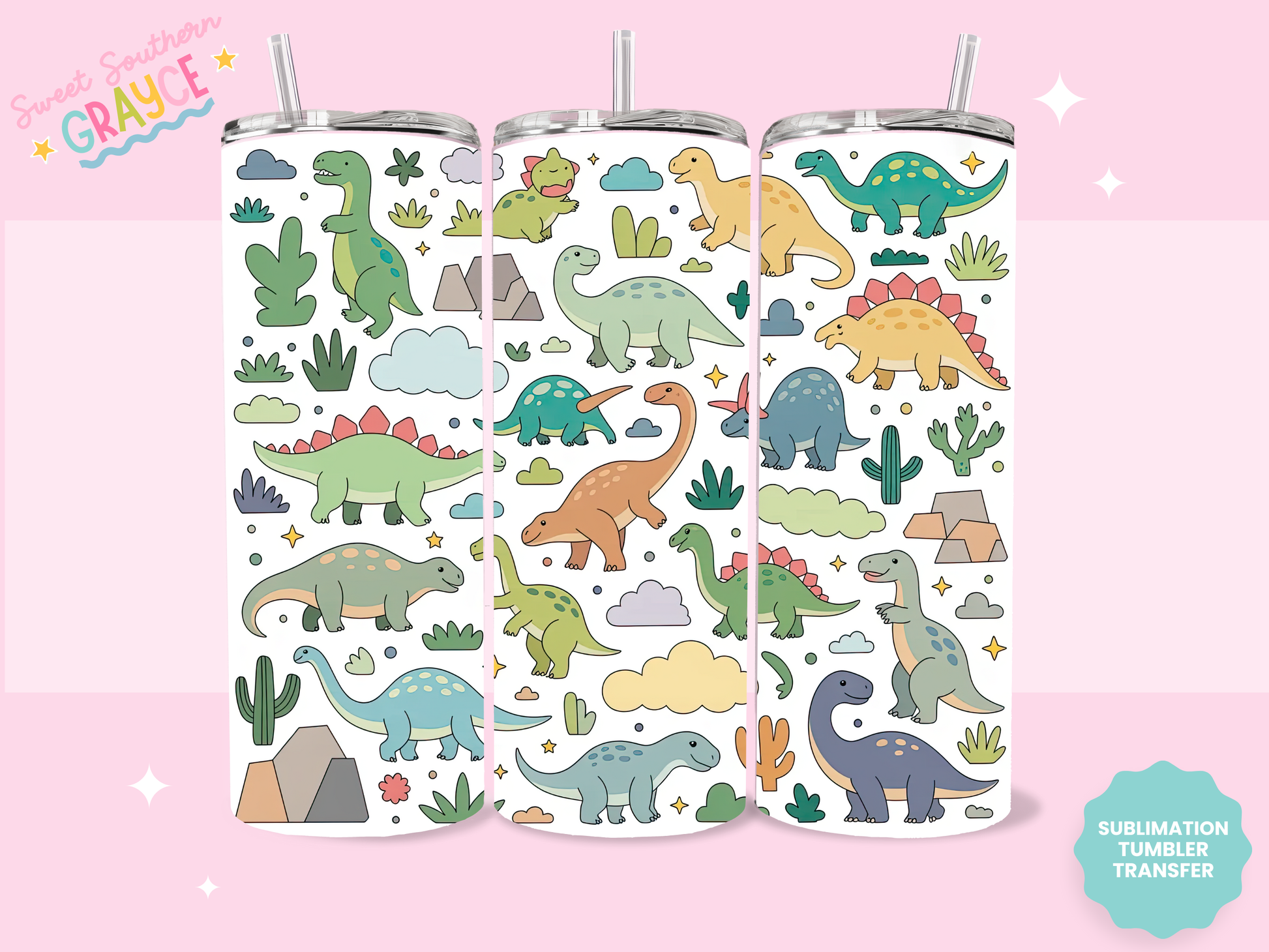 20oz SUBLIMATION TRANSFER- CUTE DINOS