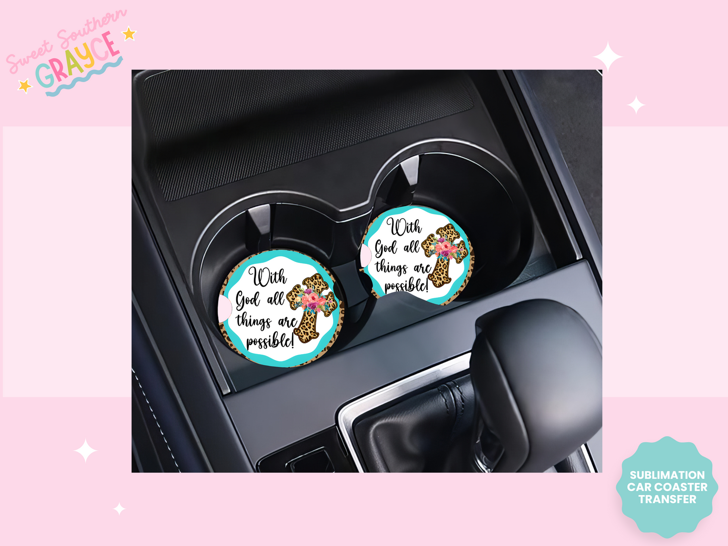 CAR COASTER SUBLIMATION TRANSFER - WITH GOD ALL THINGS ARE POSSIBLE